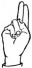 На ћирилици написано АЛЕКСАНДРА КОМАРНИЧКИ састоји се из 20 слова [?]. Исписано ћириличном једноручном азбуком за глувонеме: